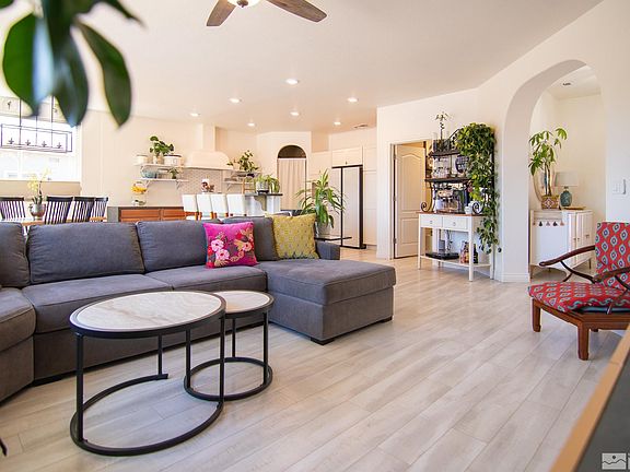 Located in the serene Woodland Village community, this stunning single-story home offers breathtaking views of the surrounding hills and mountains, with access to scenic walking paths and parks. Set on nearly a quarter-acre, the property includes RV parking, a xeriscaped front yard for low maintenance, and a fenced backyard fruit trees (apricots, peras, apples). The open floor plan, and abundant natural light create a warm and inviting living space , ideal for both relaxing and entertaining., A sliding glass door in the living area frames peaceful backyard and hillside views. The kitchen seamlessly flows into the living area and features newer laminate flooring, sleek appliances, a six-burner gas stove, deep wood cabinetry, a large pantry, and a breakfast bar for additional seating and serving space.The spacious primary suite overlooks the backyard and includes a ceiling fan, dual vanities, with shower, a linen closet, and a large walk-in closet with built-in organizers. Additional bedrooms are generously sized with ceiling fans. Tucked away on a quiet cul-de-sac, this beautifully maintained home offers versatility, comfort, and an unbeatable location. Discover the lifestyle you've been looking for!