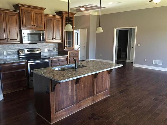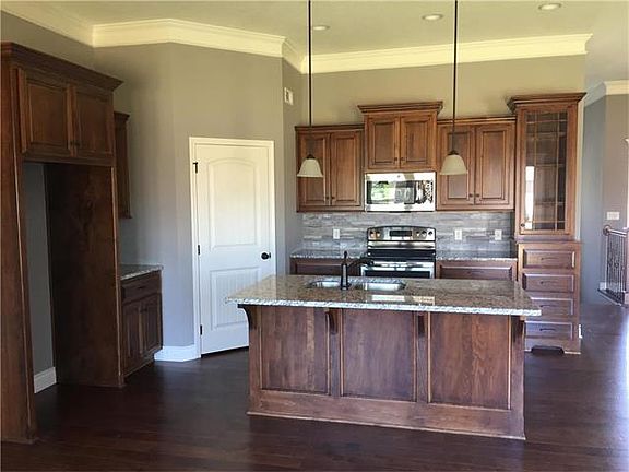 New Construction, complete and ready for new owners. Absolutely gorgeous home, on nice lot in quiet yet friendly neighborhood. Master bath has jetted tub, separate shower, his and hers vanities, 9x7 walk thru closet with built in storage. Extra details like tray ceilings, tile backsplash, crown molding make this home extra special. Walking distance to elementary school, 3 blocks from high school. Community lake, walking trails and pool. 10 minutes to Olathe shopping. Basement has 2 brm and full bath roughed in.