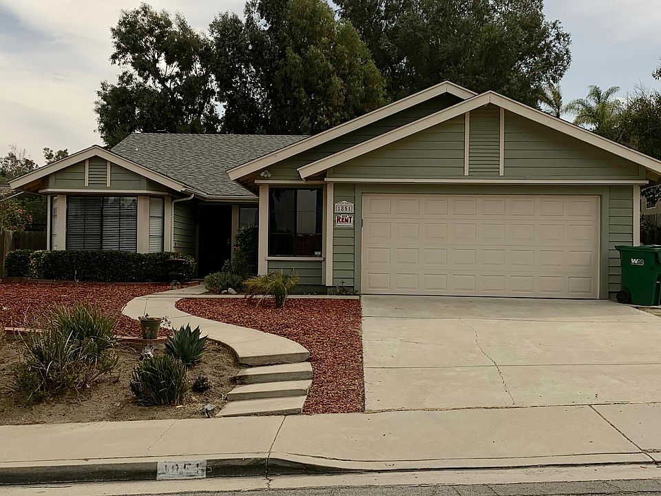Freshly painted, newer laminate flooring throughout, large living/great room with fireplace, dining room, large kitchen with area for dining or office, 2 car garage, laundry hook ups in garage, covered patio and fully fenced yard. Avaliable July 1, 2021. Non smoking home, room to park two cars in garage and two in driveway. Water, trash and SDGE to be paid by renter.