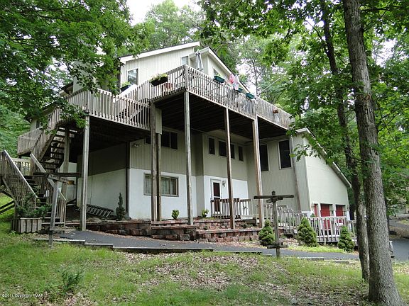 Incredible deal. This home is a must see at this reduced price with 4 decks, 4 bedrooms, 3 baths, family room, sunken living room with soaring ceiling and fireplace. Dining rm w/sliders to a large deck overlooking the NJ mountains. New roof and freshly painted in 2010. Not a short sale.