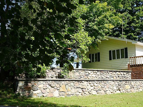 Welcome home to this well appointed lake front home featuring over 340 feet of frontage nestled in a gracious park like setting. The home has been renovated to include laminate flooring, trim, hardware and 2 highly efficient wood insert fireplaces. The large open kitchen, dining room and living room open to a lakeside deck running the entire length of the house. In addition to a spacious master bedroom and bathroom there are 2 additional main floor bedrooms. The walkout basement features a second fireplace, cozy family room and possibly 1 or 2 additional bedrooms. In addition to the attached garage you'll love the 24 x 40 pole barn and the 2 small cottages.