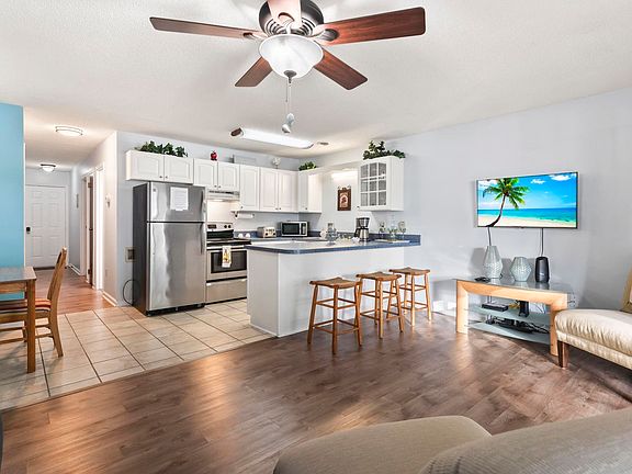 Welcome to your own private oasis in Golf Colony at Deerfield! This charming ground-level condo invites you in with a welcoming foyer that leads straight into the heart of the home, an open-concept kitchen, dining, and living space designed for comfort and style. Featuring 1 beautifully appointed bedroom and a bathroom with a tub/shower combo, this cozy retreat is perfect for coastal living. The kitchen shines with ample white cabinetry, generous counter space, and a convenient breakfast bar, ideal for everything from gourmet meals to quick snacks. The adjoining living and dining areas are perfect for relaxing or entertaining, offering plenty of space to unwind after a day spent by the beach or pool. Step outside to the expansive screened-in porch, where you can enjoy peaceful outdoor moments in comfort. Need extra storage, attached storage ensures all your beach gear is easily accessible. Whether you're looking for a personal getaway or a lucrative short-term rental, this condo offers versatile potential. Pet lovers and golf cart enthusiasts will love the convenience, and you're just a quick drive to the beach, restaurants, and shopping. Residents also enjoy a host of amenities, including tennis courts, covered mailboxes, cable and internet, building insurance, pest control, trash pickup, landscaping, and water and sewer, all included in the HOA fees. Discover the ultimate in coastal living at Golf Colony at Deerfield, where every day feels like a vacation! Measurements are not guaranteed. Roof was installed in 2022 along with the HVAC being replaced in 2022, water heater replaced in 2020. Buyer is responsible for verifying.