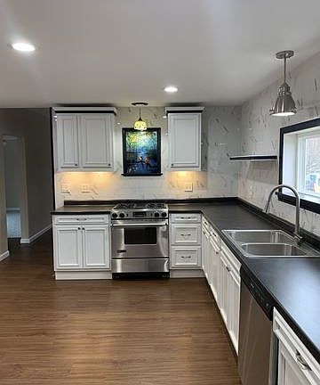 What more can you ask for than this completely remodeled 2 bedroom 1 bath home! This home features 2 bedrooms freshly painted with new carpet to be installed. Spacious Eat in kitchen with new custom Maple cabinets, countertops, back splash, waterproof vinyl flooring, double stainless steal Jenn -Air convection oven, and dishwasher. Large living room with electric fireplace accented with stone great for entertaining (remote controlled w/ blower.) Soak in your new bath tub surrounded by Marble title. New windows, roof, ceiling fans, canned lighting and flooring throughout. Full unfinished basement. Large yard with 2 car detached garage. Nothing to do but move right in!