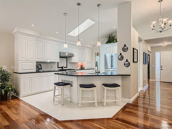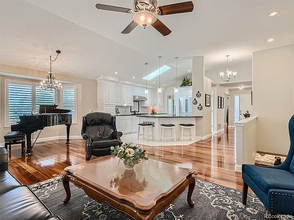 Nestled within the picturesque Red Hawk Golf Course community in Castle Rock, this stunning ranch-style home exudes comfort, style, and modern living. Stepping through the front door, you're immediately struck by the spaciousness of the interior. The main level boasts a flowing floor plan that seamlessly connects the dining, kitchen and living areas, creating an ideal space for both family gatherings and entertaining friends. Large windows throughout the living area flood the space with natural light, highlighting the beautiful hardwood floors and tasteful decor. The gourmet kitchen is a true chef's delight, featuring soapstone countertops, custom cabinetry, and high-end stainless steel appliances. A breakfast bar provides extra cozy seating. This home offers four spacious bedrooms, each thoughtfully designed to provide both privacy and comfort. The master suite on the main level is a luxurious retreat, complete with a walk-in closet and a spa-like ensuite bathroom. The bathroom features a separate glass-enclosed shower, creating an oasis of relaxation. As you make your way downstairs to the finished basement, you'll find a versatile space that can be transformed to suit your needs. Whether you envision a home theater, a den, or a guest suite, this area offers endless possibilities. An additional bathroom on this level ensures convenience for both residents and guests. Outside, the backyard is a haven for outdoor enthusiasts. The meticulously landscaped yard provides a mix of lush greenery, well-tended flower beds, and a neatly manicured lawn. The covered patio, perfect for entertaining, overlooks the serene surroundings, offering a private oasis for relaxation. The 3-car garage is insulated and heated. Located on a corner lot within the highly sought-after Red Hawk subdivision, this home with its modern design, functional layout, and prime location, this 1-level gem truly captures the essence of comfortable and upscale Colorado living. Easy access to I-25.