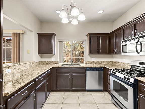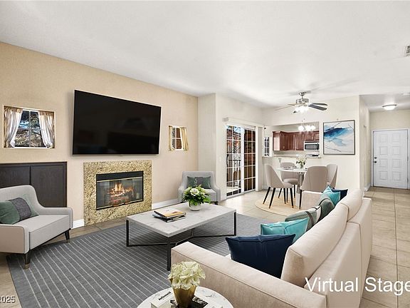 This property features 2 bedrooms, 2 full bathrooms, a two-car garage with ample storage, and a spacious entryway. The private balcony off the primary suite provides a relaxing retreat. The kitchen is equipped with stainless steel appliances and granite countertops. The dining area is perfect for entertaining, and the living room is complemented by a charming fireplace. Residents of Serenade have access to a community clubhouse, two pools, and spas. Conveniently located near the 215 Beltway, The District at Green Valley Ranch, several parks, excellent schools, and a wide variety of shopping, dining, and entertainment options.