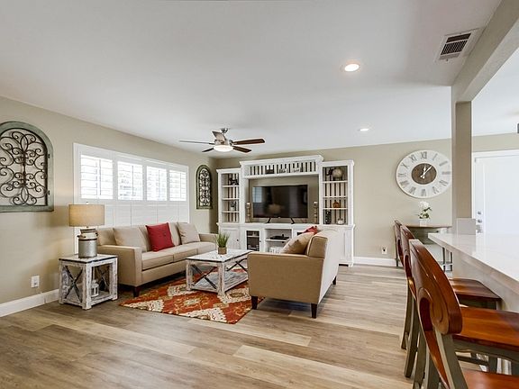 No detail or expense was spared on this completely upgraded & remodeled home. Designer styled & immaculate single-story property. New white cabinets w/ quartz counter-tops, high end built-in range w/ stainless steel hood & appliances. Latest tech in laminate flooring w/ modern baseboards, new doors, mirrored closets, new recessed lighting & fans throughout. NEW 50 yr roof. Professionally designed drought resistant landscaping & vinyl fencing. Dual pane windows boast all new shutters. No HOA or Mello Roos!