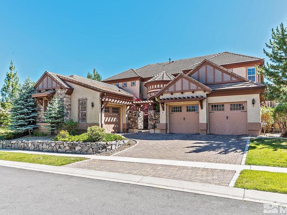 This home has been highly upgraded and features a popular floor plan with 5 bedrooms, 4 full and 2 half baths, and two laundry rooms. The main level living area includes a master suite, as well as two additional en suite bedrooms, an office, living family room, dining room, and kitchen. Upstairs, you will find a large loft that could be used as a gym or playroom, library area and a dedicated movie theater along with 2 additional bedrooms with a Jack and Jill bath. Open house Sat 8-23 from 11-3, Perfect for a large family! This home boasts over 5,700 square feet of living space and has recently undergone significant updates, including new solid maple hardwood flooring, new carpet, and fresh paint throughout. The interior is spacious and modern, offering plenty of room for entertaining and relaxing. With its prime location, beautiful updates, and ample square footage, this home is perfect for those seeking a luxurious lifestyle in one of Reno's most desirable neighborhoods. Other features include granite counters, a walk-in pantry, and GE Monogram appliances. The home has a lovely courtyard entry and a large back patio that is protected from the wind and accessible from the family room, living room, and master suite. The mature landscaping adds to the overall beauty of the property. This home is perfect for those seeking a luxurious and spacious living space in a desirable location. For those looking for multi generational living, this home is perfect with separate living quarters.