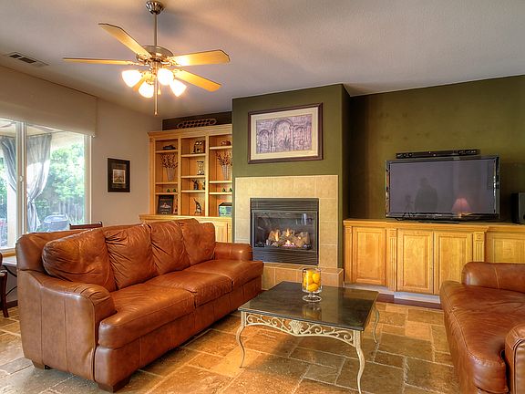 Welcome to PARADISE! Rare Spec home with exquisite backyard.Travertine & hardwood flooring. Cstm window trtmnts. Built-in cabinetry.Cooks kitchen w/dbl oven,island,gas cooktop.XL pantry w/storage.Dwnstrs bdrm w/ full bath. Mudroom style garage entry w/storage. Upstairs media/bonus room. Bdrms with walk-in closets. Mstr bdrm with sitting retreat. BACKYARD OASIS with covered patio, fans & lighting, heated Pebble-Tec pool & spa. Central Vac,Water Softener,2 HVAC units. Finished garage with cabinets