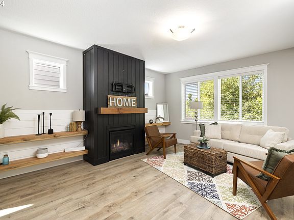 Beautifully finished interior greets with modern farmhouse style great room living. Charming finishes, such as shiplap, built-in shelving, cozy gas fireplace and a neutral pallet, create a welcoming atmosphere that overlooks the treetop view to the west. Dining area adjoins the back patio and the modern kitchen, which is complete with textured tile backsplash, quartz counters, spacious island with bar seating, pantry, stainless steel and gas appliances. The primary bedroom boasts an amply proportioned walk-in closet and en suite with dual sink vanity and separate commode room. Needing home office or gym space? The three auxiliary bedrooms and the stairway nook provide versatility without compromising the flowing layout of the home. Lifestyle exterior offers low maintenance backyard providing patio space for game day barbeques, raised beds for your kitchen garden and a dog run. Conveniently located near schools, downtown shops, seasonal farmers market and community events. Please call today to schedule a showing!