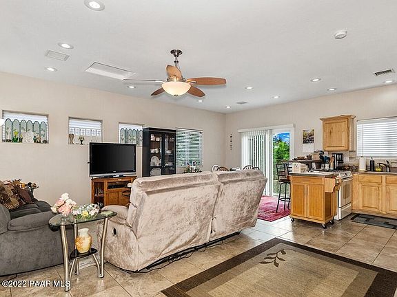 Fantastic Custom Home in the conveniently located Diamond Valley neighborhood! Come see this open floor plan for yourself. The kitchen boasts Hickory Cabinets, Stone Veneer Back Splash, and Solid Surface Countertops. The primary suite features a wonderful bathroom with a Jetted Tub & Walk-in Shower. Over-sized 2 car Garage with 100 Square Foot Storage Room. Private Backyard with Views of the Bradshaw Mountains! New 40 year roof installed in 2021.