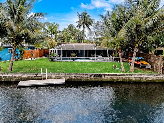 Beautiful recently-updated waterfront pool home in the very desirable Royal Palm Acres community. The property features 2 bedrooms and one bathroom plus a bonus office/den or 3rd bedroom (no closet) and boasts a remodeled kitchen with new stainless steel appliances, granite tops, full granite backsplash & newer cabinetry, dark laminate wood flooring throughout, 1 car garage, fully-screened pool & back porch & large traquil back yard perfect for entertaining or relaxing. This is one of the best-priced waterfront homes in Broward!