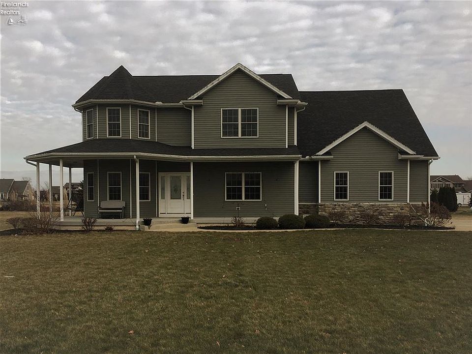 Stunning Sandusky Bay 2 story on almost an entire acre. Inviting entry off wrap around front porch opens to office space and formal dining room. Great room with 2 story ceiling, gas fireplace and gorgeous windows allow plenty of natural light. The generous kitchen boasts cherry cabnitry with slow close drawers and cabinet doors. Ample space around the bar for family and eat in area. Heated tile in kitchen, hall, 1/2 bath, laundry and master bath. Beautiful wood staircase leads to 3 bedrooms and 2 baths upstairs. Master bedroom has walk in closet, master bath complete with double sinks, large jetted tub, and 2 person shower. The finished basement has a large storage unit that stays. This space could easily be used as a 4th bedroom or in law suite with it's kitchenette/wet bar and full bath. This wonderful home has peeks of the Sandusky Bay and is convienently located south of the Port Clinton Middle and High Schools.