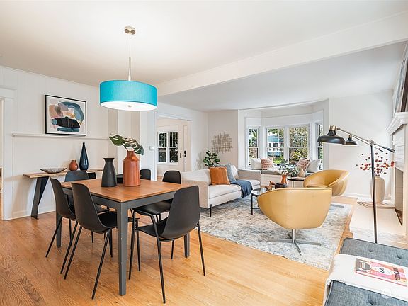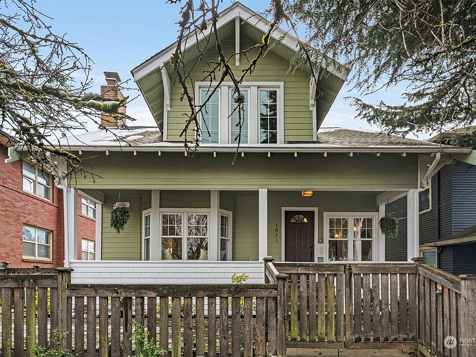 Updated gracious farmhouse with all the timeless vintage details. The welcoming front porch leads to a proper entry & spacious living areas w/ soaring ceilings, hardwood floors, rich moldings, cozy fireplace, original built-ins & inviting window seat. The updated kitchen offers a gas stove, bar seating & flows to the backyard, ideal for outdoor entertaining on the deck plus grass for Fido. An office space and 3/4 bath finish the main, while upstairs has the ideal 3 bedrooms on the same floor, A/C & full bath. Downstairs: family room + unfinished space w/ tons of potential. Updated systems & solar panels. Centrally located, leave your cars in the two pkg spaces and walk to transit, eats, drinks, parks, groceries, upcoming light rail station!
