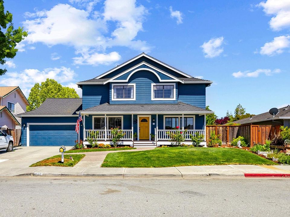 Welcome to this beautifully updated 4-bedroom, 2.5-bath home in one of Hollister's most sought-after streets! This move-in ready residence offers high-end finishes & thoughtful upgrades which includes owned solar. Inside, you'll find freshly painted interiors with an old world style texture, newer flooring, and stylish recessed lighting throughout. The staircase features elegant wood treads & a custom railing, adding a touch of architectural detail to the homes warm ambiance. Updated interior doors & modern outlets further enhance the overall aesthetic & functionality. The gourmet kitchen is a showstopper, boasting custom cabinetry, quartz countertops, a tasteful tile backsplash with floating shelves, an island, updated light fixtures, & a premium drinking water filtration system. Its a space designed for both culinary inspiration & everyday comfort. A whole home water softener system ensures comfort & water quality throughout. Step outside to a private backyard paradise, perfect for relaxing or entertaining. The fully fenced yard includes a built-in covered barbecue area, inviting pool/spa, & lush landscaping featuring a stunning variety of fruit trees: apple, nectarine, peach, cherry, lemon, and strawberry guava. A handy toolshed provides extra storage for gardening or hobbies.