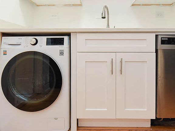 Gut rehab 1 bed, bright open living space, SS appliances with dishwasher and microwave, hardwood floors, quartz countertops, central air, in unit w/d. Pets are welcome ($30/pet/month fee). $400 move in fee per person. Tenants pay all utilities plus a $40 monthly rubs fee which covers water trash sewage recycling.