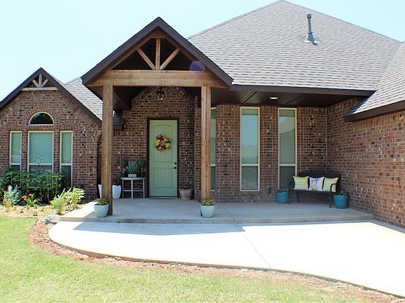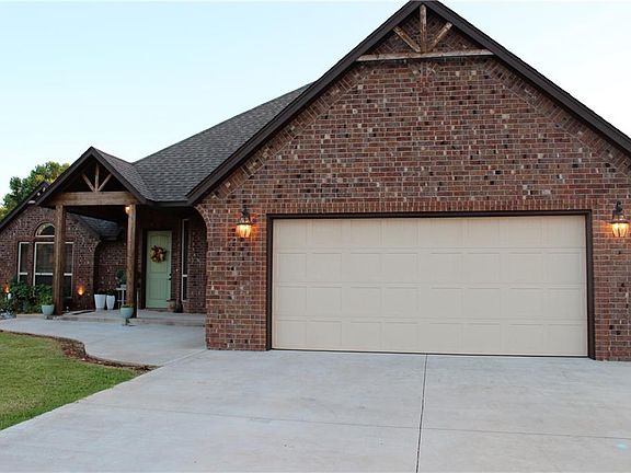 Better than new! This home features a fully sodded lot that is almost a half an acre right in the middle of town. Walking distance to Blanchard Elementary. Fully fenced backyard for privacy with a large gate to drive your riding mower right through. The oversized front porch and back patio are both covered and well lit, perfect for those cool summer evenings. In the interior of the home you will find high ceilings throughout and wood look tile in the living room, dining room, kitchen, large laundry room, and both bathrooms for easy clean up. The master bedroom is very spacious with an amazing bathroom and australian closet. If you love natural light, this is your home! There are floor to ceiling windows in the almost every room! Double vanities with tons of storage in both bathrooms. No more fighting over counter space! Every room of this home has been freshly painted. Storm shelter in the garage. Claim your own little piece of paradise before it's gone!