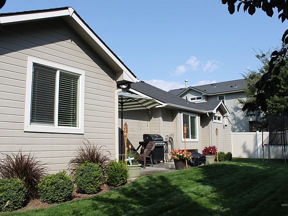 Don’t miss this wonderful single level, split bedroom floor plan home. The floor plan boasts vaulted ceilings, Living room, flex room and 4 bedrooms. New LVP flooring in the Living room, Dining room and Kitchen. Wood front counter tops in kitchen and spacious Pantry and Breakfast bar. Transom windows in front living room and Arch ways give this home nice unique architectural touch. Spacious master bedroom and walk in closet. This home is in turn key condition pride in ownership is reflected in the home and yard. Full gutter system, 30 year shingle, mature landscaping, Garden Shed, and Garden Space. Kelly Creek is a very popular NW Meridian community located very close to stores, restaurants, Parks, schools. BTVA Open House 21-22 11am/1pm