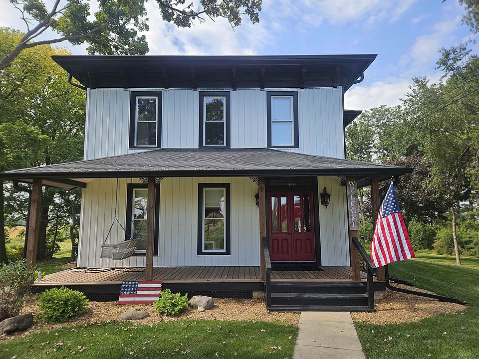 SBR - WOW! A true gem in a beautiful country setting, yet just 3 miles from town. Fully remodeled and pristine Victorian 2-story home with modern kitchen & baths. Featuring 15 acres with 3 stocked ponds and beautiful country views, a large barn with solar panels (owned) another detached garage with a John Deere tractor & zero-turn mower included, a new roof (2024) and siding (2024), new front porch, flooring (lvp & carpet) and meticulous landscaping. As soon as you walk in, you'll quickly notice the gorgeous updates throughout the home with modern touches. Comfortable family room with electric fireplace leads into the spacious dining room with another electric fireplace. A formal living room with natural light can be turned into an office space as well. The gorgeous spacious kitchen offers a large island, updated cabinets with ample storage and all new lighting. Full modern bath with tiled shower, and an amazing screened in porch complete the main level. Upstairs you'll find 4 spacious bedrooms including a primary with built in closets as well as a his and hers walk in closet space. Another modern large full bathroom complete the upper level. The amazing property includes a screened in building overlooking the stocked pond, a large 60x40 pole barn, 2-stall detached garage and gorgeous country views. Heat is LP and Electric. Gorgeous properties like these don't come around often!
