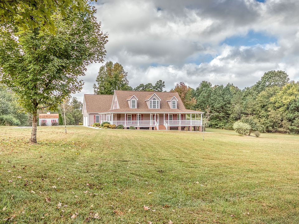 Quiet country living with an open floor plan. Enjoy beautiful spaces indoors and out! This three bedroom 2.5 bath home sits on 5 gorgeous acres & features a spacious first floor master with private porch access, lovely hardwoods, screened porch and much more. There is a ton of storage space both indoors and out, along with a freshly painted interior and new carpet. Beautiful mature landscaping and amazing wrap around porch complete this wonderful home in the quiet community of Silk Hope.