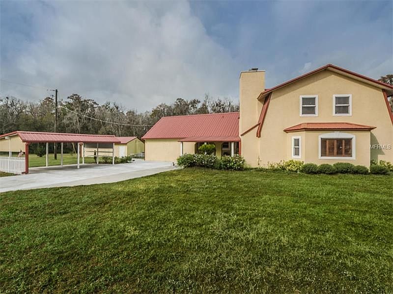 Beautiful 4.55 acre equestrian Home with scenic land views! This 2 story home features 2730 SF of Living Space, 4 Bedroom, 3 Bathrooms, plus Pool. Updated Kitchen with granite and stainless steel appliances, Tile Flooring, 2 Wood Burning Fireplaces, Bonus Room, Double Sinks , Walk-In Closets, Vaulted Ceilings, Large porch area, plus Barn, 600 sf building currently used as recording studio, and much more. Close to Tampa, Shopping, Medical, Schools, and more.