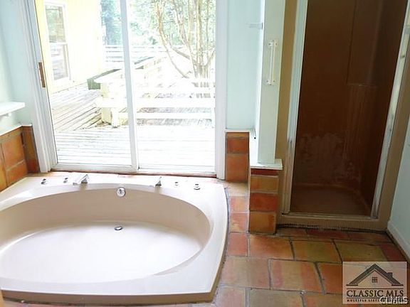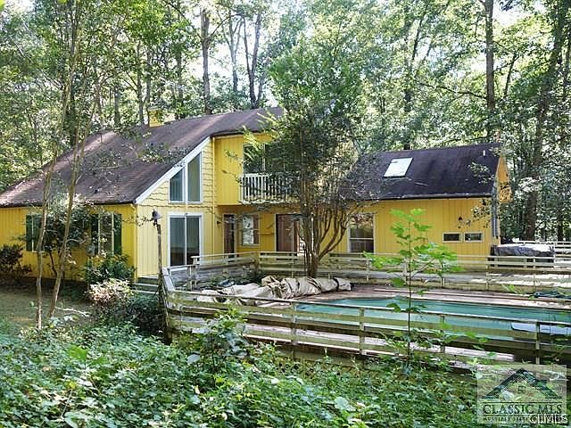 27.59 acres in Oconee County with horse barn, fenced 5-acre pasture, garage apartment and 4/3 house with finished basement. Beautiful land with creek and hardwoods, the driveway meanders to the garage apartment & circular drive to home. Enter home via deck into the Great Room with vaulted ceiling, large windows, tiled floors & southwestern style fireplace. Dining room is adjacent with sliding glass doors. Delightful, sunny eat-in kitchen w/ hardwood floors, vaulted A-frame windows, skylights & transom windows between cabinets & tiled counters. Master bedroom suite on main level has hardwood floors, walk-in closet and large master bathroom w/ oval tub, tiled floors & separate shower. Upstairs are 2 bedrooms with Jack-&-Jill bathroom. Basement is finished with wood stove den, brick flooring, bedroom, & full bath. Outdoors is a beautiful view of woods and creek. Hot day? Dive into pool outside kitchen. Detached garage has apartment above. Property being sold “as-is”. Priced at current appraisal. Fabulous, rare opportunity for acreage in Oconee.
