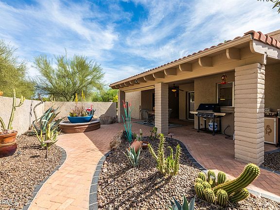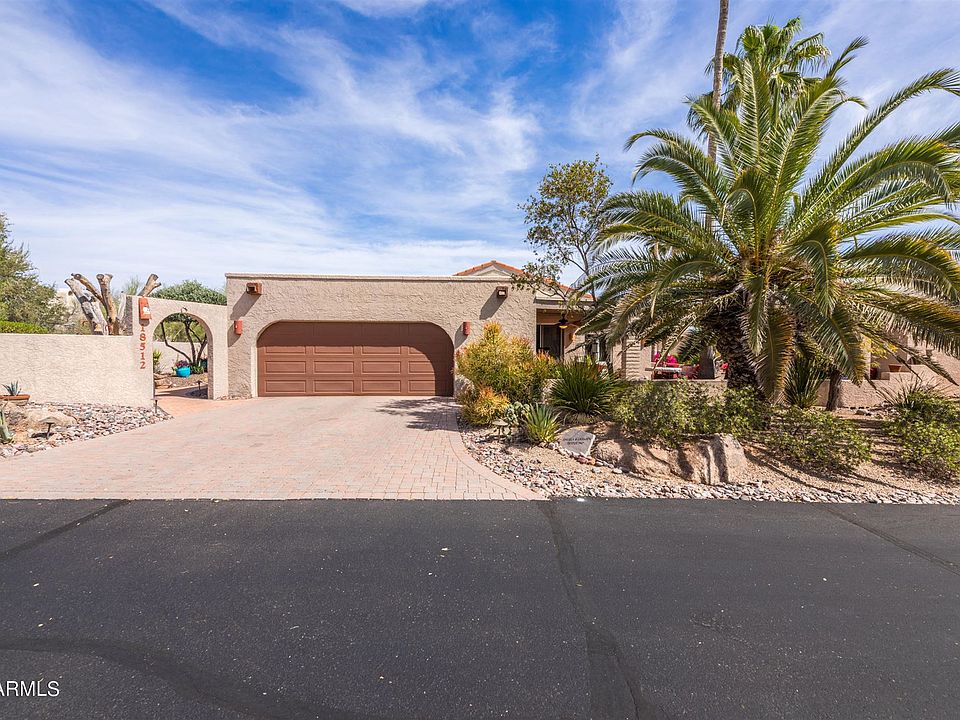 This amazing home w/casita includes 3BR 3BA, 3 garage spaces & sits on a view lot of the Four Peaks. The Courtyard, Patio, and driveways are done in pavers. Bring your living space outdoors with patios front, back and center.Modern Kitchen has granite counters, White cabinets, and stainless steel appliances. washer dryer and refrigerator stay and some furnishings can be purchased outside of escrow. Handsome real wood floors plus tile in all the right places. Master Suite has lg walk-in closet with organizers, Granite vanity, 2 sinks and bidet. Private access to bath for Guest BR w/ sliding door to courtyard. Wood Burning FP in LR is perfect during the occasional winter chills.The Casita has desk, mini frig, tank-less hot water heater it's own HVAC & garage Lisbon Lemon,GF & Orange Trees