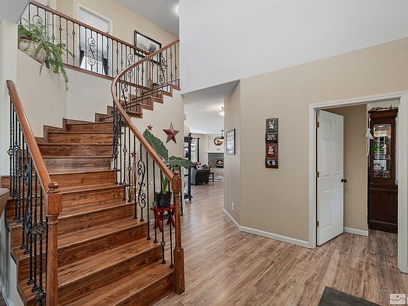 Experience pride of ownership in this stunning home featuring a grand spiral staircase upon entry. It offers separate living, dining, and family rooms, plus two bonus rooms one with a private entrance. The gourmet kitchen complete with a granite island opens to the family room and boasts views of the backyard, local lake, and mountains. A solar system ensures high efficiency energy bills. The spacious backyard invites you to enjoy the picturesque scenery and offers a gazebo, trellis and mature landscaping., Welcome to the home you've been dreaming of! With an expansive 3,932 square feet, this residence offers ample space for all your needs. Nestled on a meticulously landscaped .34-acre lot, the property exudes peace and tranquility, making it your perfect retreat. The outdoor space features two sheds, providing plenty of additional storage and potential RV parking. A desirable front porch invites you to relax and enjoy the neighborhood. The master bedroom is a true sanctuary, boasting breathtaking views and a spacious walk-in closet. For added convenience, there is a bedroom on the main level, ensuring ease of access for guests or family members. This home combines functionality and beauty, offering a harmonious blend of indoor and outdoor living. Don't miss the opportunity to make this your forever home!