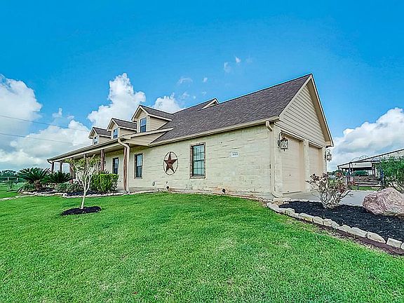 Beautiful Ranch Style home on 5 ACRES in Needville ISD! Enter gate & up the winding driveway to this fabulous custom stone clad home. Fantastic kitchen w/granite, loads of cabinets (w/pull outs). The family room has vaulted ceilings, corner fireplace, beautiful built ins. Lighted arena and pasture are both fenced for livestock. The barn has 3 stalls, work benches, Lean-tos for parking trailers/tractors. PLUS a nice arena. Two huge porches to enjoy the peace. Only minutes to 36 and 59!