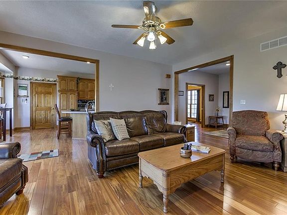 Wonderful ranch style home on quiet street! Interior features: main level living, private area with scenic views of sunsets and sunrise, wood flooring throughout main level, upgraded kitchen with tons of cabinet space, floor to ceiling windows providing tons of natural lighting, full, finished, walkout basement with wetbar, extra room great for exercise or media room, basement bedroom and full bath, 2 spacious rooms with walk-in closets on main level, and master suite with whirlpool tub!