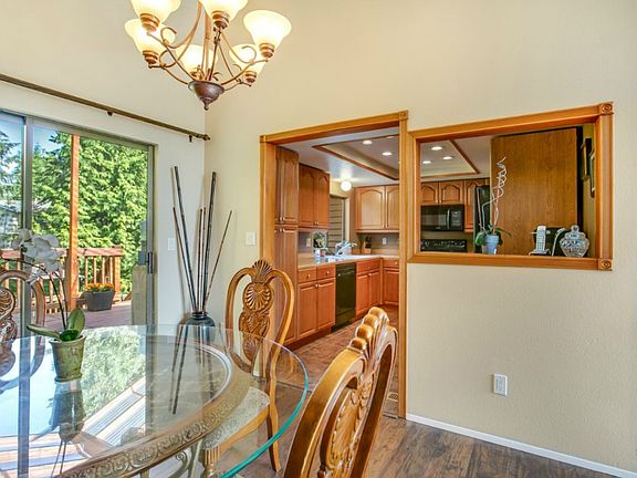 Wow factor describes this home! Soaring ceilings w/floor to ceiling vaulted windows, updated home. Walk out to multi level deck & be amazed at the 1/3 of an acre, park-like yard backing to greenbelt. Pride of ownership inside & out. Remodeled kitchen w/abundant cabinet & counter storage, 2 pantries, granite, black appls, glass cabinet & wine rack. Living & dining rms w/fireplace. Master w/bathroom/shower. 4th bedrm downstairs & recroom-brand new carpeting & flooring. Award winning Kent schools.