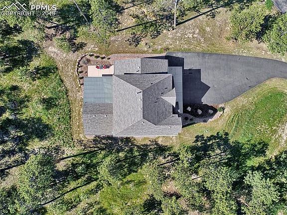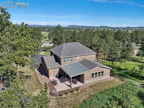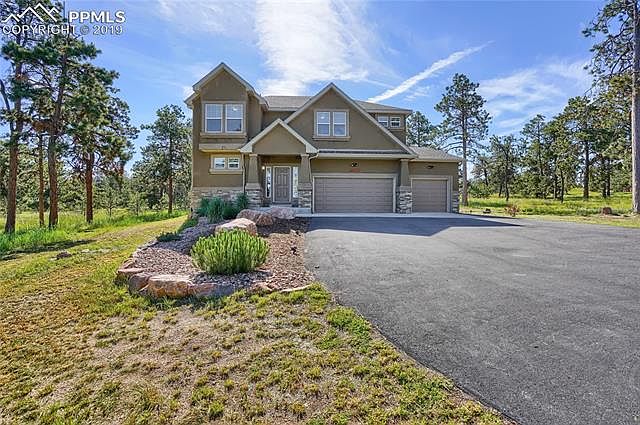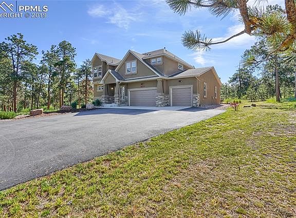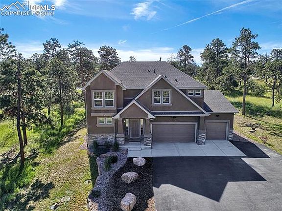 Stunning Home nestled on 2.5 trees acres in Kings Deer. Meticulously maintained and updated, this four bedroom, four bathroom house has Hickory hardwood floors with custom inlays on the main level, a large open gourmet kitchen with tons of space to entertain and relax. Stone surround and double sided gas fireplace. Walk out to the large covered concrete patio. Serene and private within the tall pines. Upon entry you?re greeted by wide plank hickory hardwood flooring opening up to the amazing gourmet kitchen & great room. Upgrades include hickory wood floors, granite counters, tile back splash, under cabinet led lighting, stainless steel appliances with gas cook top, ss kitchen sink, floor to ceiling rock fireplace, Check out the double fireplace on the covered patio! Oh did I mention the loft upstairs or master sitting area! Also with the storage space in the basement you will have space for the toys in the 5 car garage. You will love this home! Huge basement designed perfectly with dry bar (easily converted to wet bar), lots of room to play and entertain with tons of storage. Central air included. Washer and dryer along with pedestals included. Close to parks, trails, schools, shopping with easy access to 1-25 for a commute to the Springs or Denver. Pride in ownership shows as the original owners have done a great job caring for the home. Don't miss out!