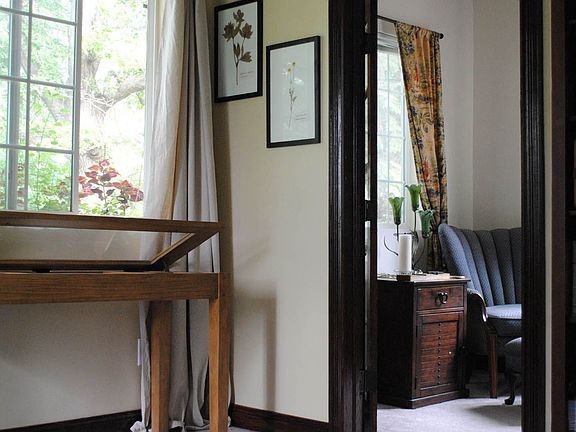 Cozy farm house with wood burning stove on 2 acre lot with mature trees. Dairy barn with newly rebuilt roof and framing, chicken coop with new roof, green house with dedicated plumbing, Lots of room for flower and vegetable gardens, fruit trees and partially fenced yard.