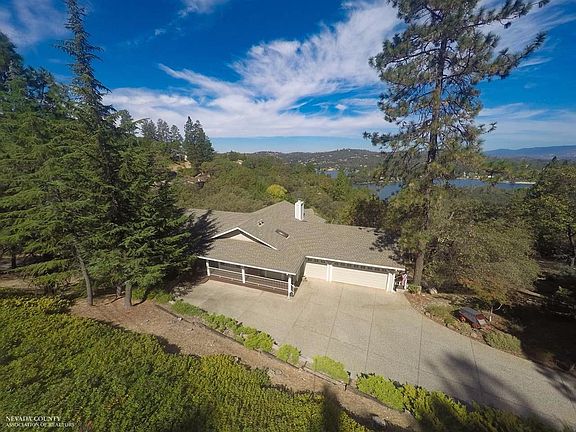 Meticulously maintained home with HUGE lake, mountain & majestic sunset views from every room.Private gated community in Sierra Foothills below the snow,1 hr from Tahoe.300 acre lake for boating & fishing,18 hole golf course,5 beaches,tennis,pool, clubhouse,restaurant,marina & more.All main living on entry level/handicap friendly. Entertainers delight with light & bright open floorplan,dining area with room for 14 open to great room with fireplace,vaulted & coffered ceilings & a wall of windows to bring in the north facing views. Master suite has lg. jetted tub,seperate shower,lg walk-in closet & door to deck that spans length of house for outdoor entertainment.Pantry, pull out shelving. Newer roof & HVAC. Downstairs are guest rooms, bonus room, another 2nd deck and tons of storage.Workshop for all your building or outdoor projects.Oversized lot affords tons of privacy & control of views. 3 car garage plus additional parking can accommodate boat or other toys.Dog run. yard art excluded