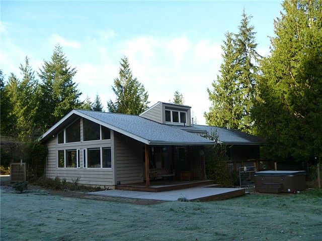 Country setting yet close to town on one full acre. Large wood wrapped windows look out to private yard and deck. Pine ceilings, slate hearth around wood stove. Vaulted ceilings, sliding glass door onto deck. Master bedroom with bath. Cedar siding, new roof and furnace.