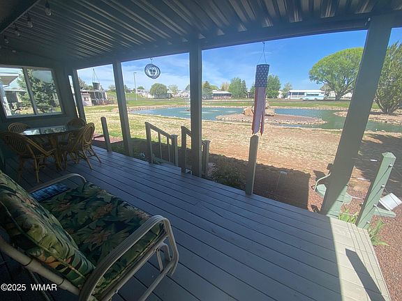 LOCATION LOCATION ! This lovely updated home is located on the greenbelt with a water feature & fountain. Enjoy the spectacular sunset views from the shaded deck. This home has been remodeled and includes a new HVAC (A/C & Heat Unit), New water heater & New full size washer & dryer in the shed. It also features a wood burning stove for chilly mountain nights or year round living. This home is bright and spacious and is a completely furnished MOVE IN READY property. Enjoy the lifestyle Juniper Ridge Resort has to offer with a private 18 hole golf course, pickle ball courts, arts & crafts, social events, dances and MORE! Juniper Ridge Resort is a 55 Plus, Gated Community in the cool White Mountains of Show Low, AZ.