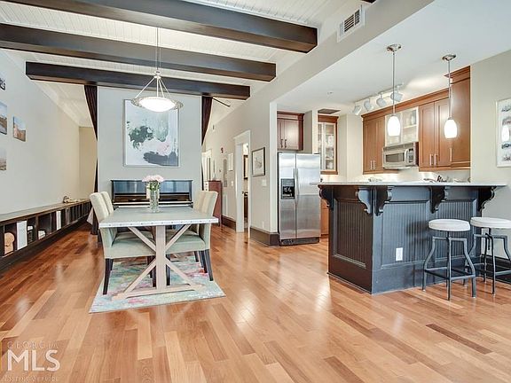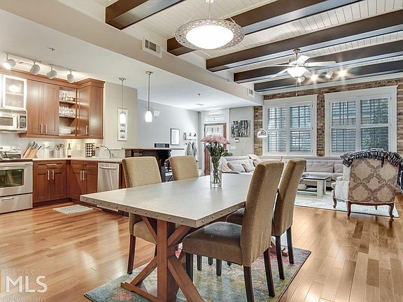 Updated & spacious John Willis built condo in Lake Claire. Interior features include 10 ft exposed beam ceilings, rustic brick walls, expansive bookshelf, hardwood floors, updated kitchen and bath, SS appliances & breakfast bar. Private master suite w/ huge walk-in closet. Rare 1 BR unit comes w/ 1 assigned parking space and EXTRA LARGE storage unit. Enjoy European-style courtyard and secured access. Walk to Candler Park & upcoming Pratt Pullman District, restaurants and Marta.