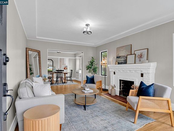 Outstanding Location!!! This property is ideally situated just moments from shopping, dining, and the Del Norte BART station. The expansive living room is highlighted by a charming vintage fireplace and beautifully restored hardwood floors. Adjacent to this area, the formal dining room seamlessly connects to an updated eat-in kitchen, featuring modern countertops, stainless steel appliances, and custom cabinetry. The home offers two generously sized bedrooms, each equipped with walk-in closets for ample storage. The recently remodeled hallway bathroom is spacious and showcases a new tub along with contemporary finishes. Additional features include a large storage/office space linked to the one-car garage, perfect for working from home, and a convenient in-home laundry room located next to the kitchen. The backyard provides plenty of room for outdoor activities, while the front of the house boasts a large driveway and low-maintenance landscaping. This home is ready for you to move in and make it your own!