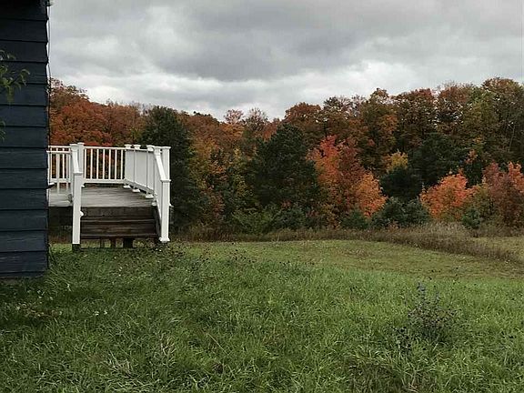 Awesome hillside country views from every window on your 9 acres! 2015-New 13 block full basement, well, septic, slider door, and more. Basement is plumbed for laundry and a bathroom. Tongue and groove pine walls bring the cozy to this home while enjoying warmth from your pellet stove. Finished, enclosed loft space above living area adds guest space or storage. Some new appliances. Needs your cosmetic touches. No Showings 1-25-20 to 2-3-20.