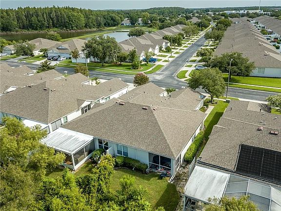 What an Awesome Maintenance Free Villa in the Gated Community of Meadow Pointe in the Enclave of Longleaf! You will absolutely fall in love with this home; let's start with the GORGEOUS Eat-In Kitchen Boasting 24" Tile flooring, Frigidaire Stainless Appliances, Beautiful Cherry Wood Cabinets/Pantry Doors and Granite Counters with Glass Tile Backsplash extending across three walls. The Openness of this Kitchen allows for a Kitchen Table or a Dining Room Table to be used making it a versatile space. The Great Room is Spacious with Large Windows, Beautiful Wood Laminate Floors and the Perfect Wall for that Large Screen TV and Sliders to the Lanai which offers Beautiful Conservation Views. The Master Suite Features 2 Walk-In Closets, a Large Walk-In Shower, Long Vanity with Double Sinks separated by a spot for your Vanity Chair, the Secondary Bath has a Tub/Shower Combo with a Pedestal Sink. This is a Split Bedroom Plan which allows for Privacy. The Laundry Room has convenient shelving and a Full Size Washer/Dryer which convey. The Low HOA of $120 a month covers roof replacement (replaced in 2012/2013), Exterior Painting (done in 2018), Grounds Maintenance and reclaimed water for irrigation. You'll enjoy the amenities including the Community Pool, Fitness Center, Tennis Courts and Playground, plus the easy access to Major Highways, Restaurants, Wiregrass Mall, Premium Outlet and the Hospital. Don't miss this one, call for a Private Viewing today!