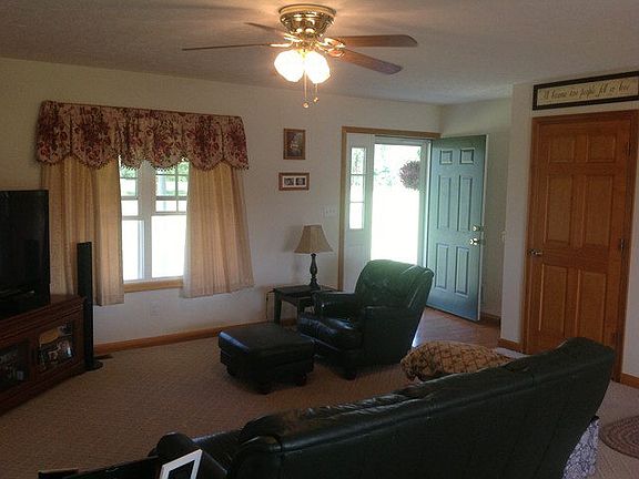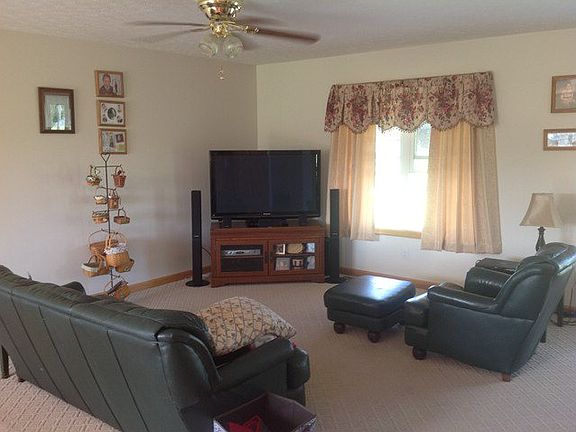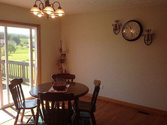 $$$ 10K Listing $$$ Relax and enjoy those country evenings on the front porch of this one owner ranch home just minutes from the highway. This home is extremely well kept and ready for move in. Two car driveout basement garage with new concrete parking area and sidewalks. Basement is ready to be finished for additional living space. Bright kitchen with bar area and sliding door to rear deck. Lovely view of the hillsides all around.