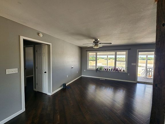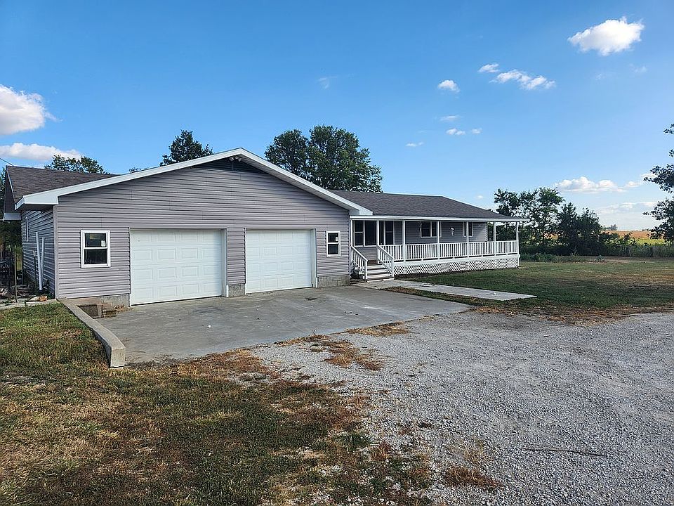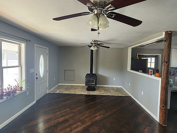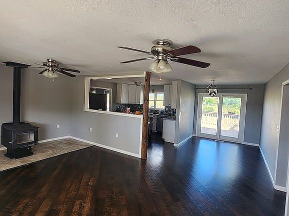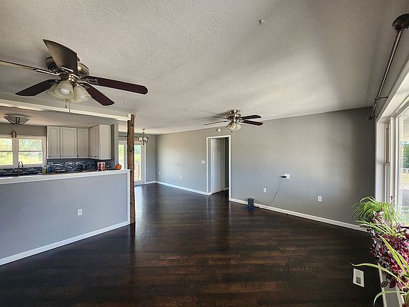 Cute ranch style home with 3+ bedrooms each with a closet, and one having a cedar closet, 2 full bathrooms and a 2 car attached garage, all on 4.8 acres, that sits a good distance off the gravel road, making the front yard large and beautiful! There is a bonus room that can be used as a den, extra living room or even a master suite area, off of the kitchen.