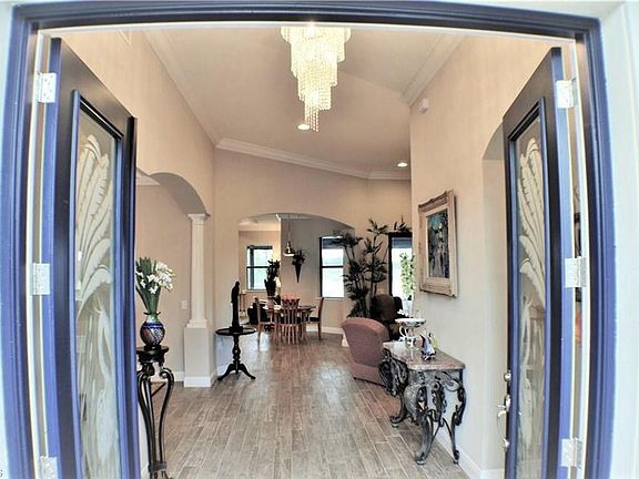 The best view in the community!! The moment you walk under this real patina stone entrance and through the double French glass doors that have been etched by a local artist you will realize that this presidential home has the most captivating almost panoramic elongated view of the lake through large picture windows that no home on the market has. This premium lot home also has almost 250k in upgrades throughout. Storm Smart hurricane screens front and rear to a barrier island wind rated pool cage with Super Screen. As you walk across the porcelain tile you will notice it flows completely throughout the home with no transition pieces. Ceilings up to 12 feet, Crown molding, tray ceilings, impact windows. Whether you're enjoying your view from inside your 2,713 AC SF or from your approx 650SF covered lanai, preparing dinner on your large double roof vented stainless grill next to the heated saltwater pool with a hot tube, your gatherings will be a hit. The home also has an Oversized Three-Car Garage. The member-owned Country Club has three Championship Golf Courses and two clubhouses. The Audubon Signature Sanctuary provides stunning views and much more. no CDD's, furnishings optional