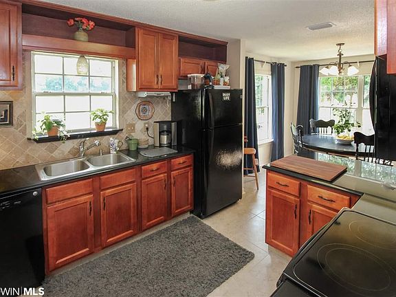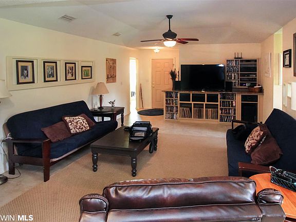 Great House in Blackwater Lakes! This 3 bed 2 bath home is over 1800 square feet and offers numerous upgrades thoughout. Living room has vaulted ceiling, custom built in entertainment center with Giallo Veneziano granite and access door to back of electronics. Kitchen features absolute black granite with matching appliances. Master suite features tray ceiling, jetted tub, stone shower, Kohler Iron/Impressions Vanity-top bathroom sink and Newport Brass faucet, and walk-in closet. Travertine Tiles and Slate flooring bring a high quality finish to the house. Guest bath features a unique Rainforest Green Granite sink and high end faucet. New Roof installed this summer. Backyard has a pergola, storage building, and fenced back yard. This house is convenient to I-10 and the Beach Express. Do not miss your opportunity to own in a well kept and beautiful neighborhood.