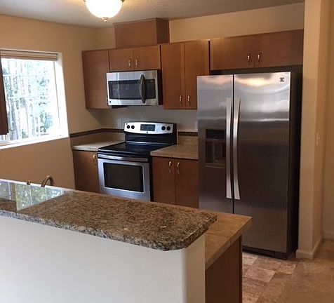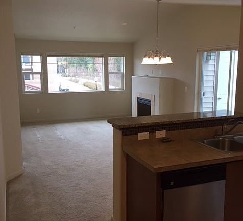 Airy and bright newer condo. This home has vaulted ceilings. Light and bright! Custom Hunter-Douglas shades!Looks out to evergreen trees. 2bed/2 bath/ SS appliances. Close to light rail, Tanasborne, shopping, eateries! super nice!All appliances stay!