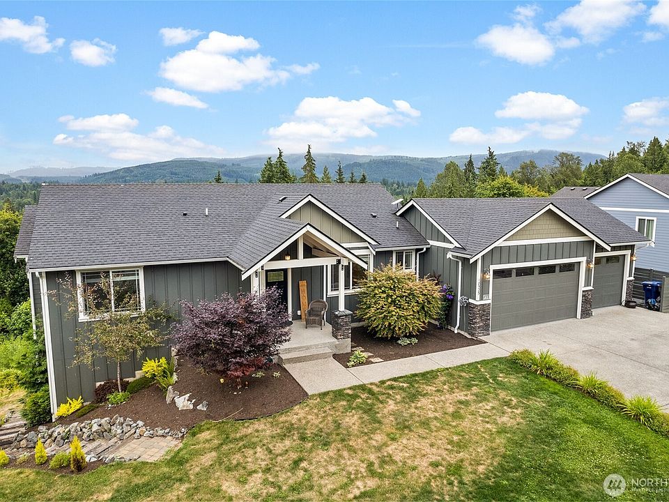 **AMAZING MOUNTAIN VIEWS THROUGHOUT HOME** Welcome to Eagle Springs! Luxury living awaits you in this quiet community of estate like homes. Beautiful move in ready daylight rambler. Main floor opens to vaulted great room w/ stacked rock f/p, built ins & slider to covered rear deck. Quartz kitchen w/ tons of cabinet/counter space, s/s appliances & gas range. Primary suite (w/ view!) includes huge closet & 5-piece en-suite bath. Additional bedroom, full guest bath, formal dining & full laundry on main. Finished daylight basement features large living room w/ slider to second view deck, 2 additional bedrooms, full guest bath, & 3 bonus flex use rooms. This home has space for everyone! Fully fenced backyard on huge .68 acre lot.