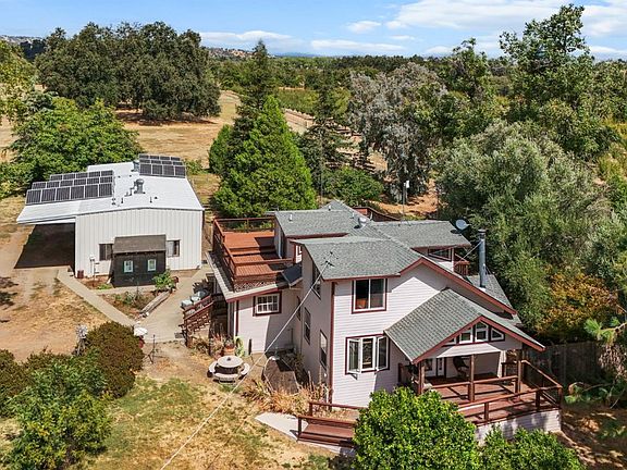 Escape to 39 acres of rich Class 1 soil where productivity meets peaceful country living. Wide open pastures, thriving orchards, and a comfortable home create the perfect balance of work and lifestyle. The land offers 17 acres of mature prunes, 11 acres of young orchards, 5-6 acres of fenced pasture for cattle, and 2 acres of open space. Two strong wells, including a 600 GPM irrigation well, provide abundant water for farming and home. Reliable power is supported by an 8 kW solar system, propane, and full-property generator. The 2,165 sq ft residence includes 3 bedrooms, 2 baths, plus an additional bath, laundry, and pantry in the unconditioned area. Recent updates include a 2023 split unit and water heater, central HVAC, and a 2005 roof with gutter guards. Surrounding the home are a large garden, chicken coop, and a dedicated building for meat-hanging and processing. Fruit and nut trees abound, including citrus, peaches, walnuts, pomegranates, avocados, olives, and more. Outbuildings include a 1995 shop with 500 sq ft studio apartment, vehicle lift, and solar housing; barn for equipment, storage, and cattle shelter; and a pole barn for orchard equipment and hay. More than land it's a lifestyle. Grow, harvest, and live sustainably with income potential and simple pleasures.