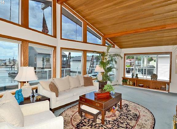 WOW opportunity knocks! A traditional home with 2 beds and 2 baths, family and living room on 2 levels. High ceilings with wall of windows makes for a light and bright home to enjoy views of the river. 50 gallon water heater. Own BOTH sides of the walkway! Assigned parking space inside the gate & additional parking space for car, trailer across street + 8 x 8 tender for storage. Best price in moorage!