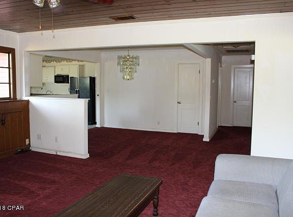 Large family home located just a 1/2 hour or so to Panama City Mall. Original part of the home consisted of the large living, dining, kitchen (which could be turned into storage) 2/2, sunroom & carport. Kitchen was added along with laundry room, small family room, 2/1, laundry and screen porch. The large kitchen with walk in pantry has a built in butcher block counter top in front of picture window, Jenn-air cook top with grill, Separate smooth top stove/oven. Recess lightning. The kitchen center island also serves as a breakfast bar with a vegetable sink for easy prep. Open DR/LR. Gas Fireplace with built in bookcase. Tongue & groove ceiling. Front sun porch H/AC vent and ceiling fan & smoke detectors. See more remarks..