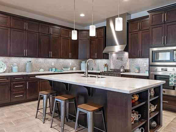 This immaculate, single-level East Garrison home is outfitted with luxurious upgrades including beautiful hardwood and tile flooring, air conditioning, a water softener, a tankless water heater, an outdoor fire pit, and a gas fireplace and surround sound system in the inviting living room. A generously sized entertainers kitchen with Bertazzoni appliances, including two ovens, also features high-end cabinetry with soft close doors, recessed lighting, a tasteful tile backsplash and brushed nickel accents, including a pot filler. Opportunities abound for making meals with an oversized island and a walk-in pantry. A separate laundry room and closets throughout the home offer ample storage. The primary suite has a walk-in closet, and the bathroom has a large shower, separate water closet, and soaking tub. With over 2,100 square feet, three bedrooms, two and a half bathrooms, and a lovely den, this gracious home, with easy access to local parks, radiates warmth, comfort and sophistication.