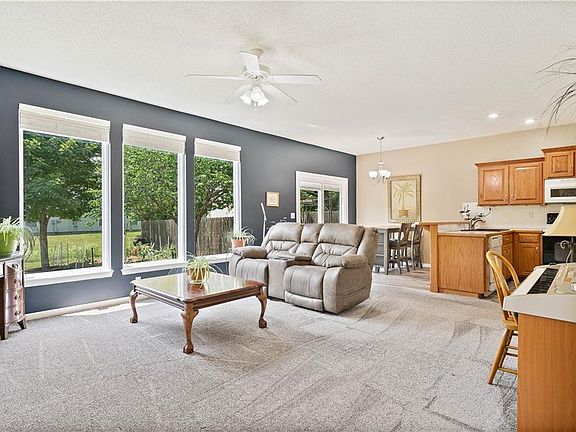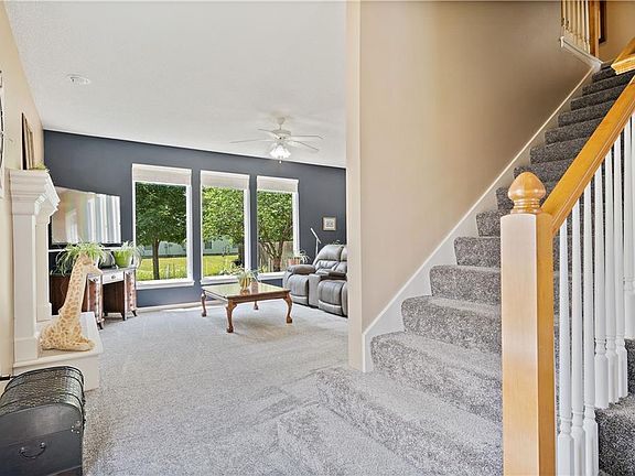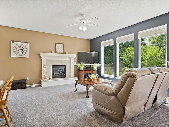 This spacious 3 bedroom 2.1 bath two story home in Gardner is one of the largest floorplans in the neighborhood! Come inside to be warmly greeted by the open concept main level with tons of natural light throughout. The main level features a beautiful entryway with half bath, a spacious great room with a stunning gas fireplace and updated carpet throughout. The large kitchen and dining room overlook the great room and make this home perfect for entertaining! Head upstairs to the large primary suite featuring vaulted ceilings, dual vanities, private tub/shower, and a huge walk-in closet. The large second and third bedrooms share a separate full-size bathroom down the hall. Don't miss the backyard offering a large patio with plenty of space for gardening and entertaining. Bring your design plans as the unfinished lower level also offers an egress window and tons of additional storage, ideal for a future finish. The home is located on a private cul-de-sac with close proximity to shopping, schools and I-35. This is the home you have been waiting for!